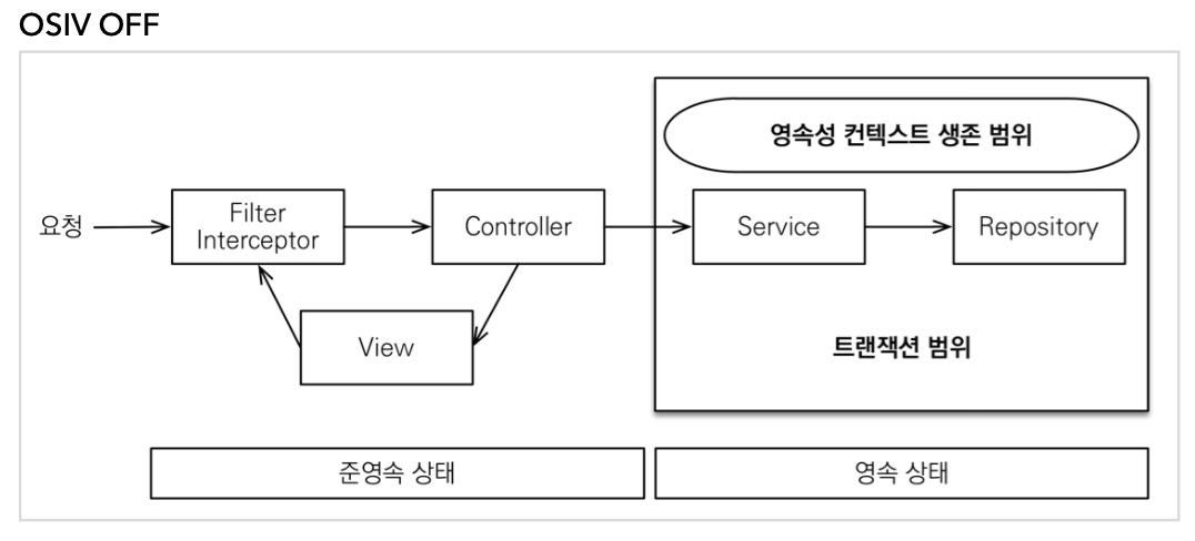 //OSIV를 끄면 엔티티와 관련된 모든걸 디비 트랜잭션 안에서 해결해야한다.