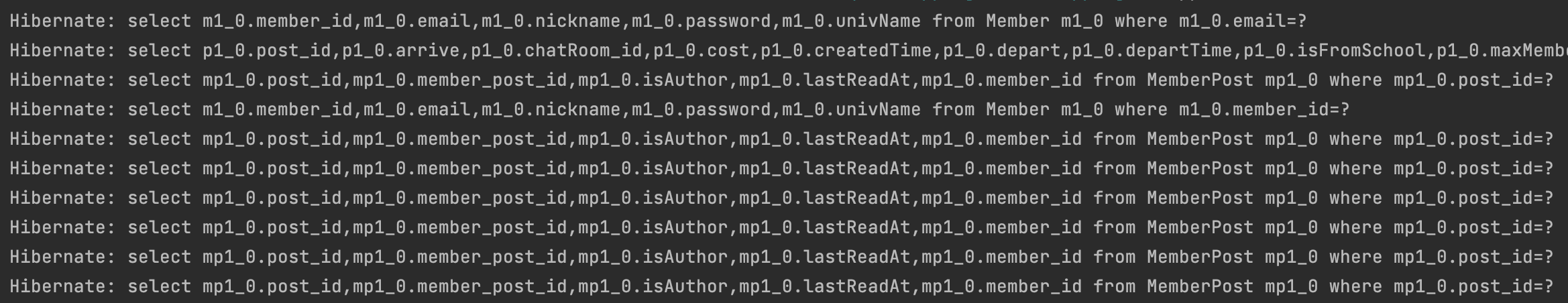 select문은 하나만 나가지만, MemberPost에 Eager Loading이 걸려있기 때문에 Post에 연결된 MemberPost들을 모두 검색한다.