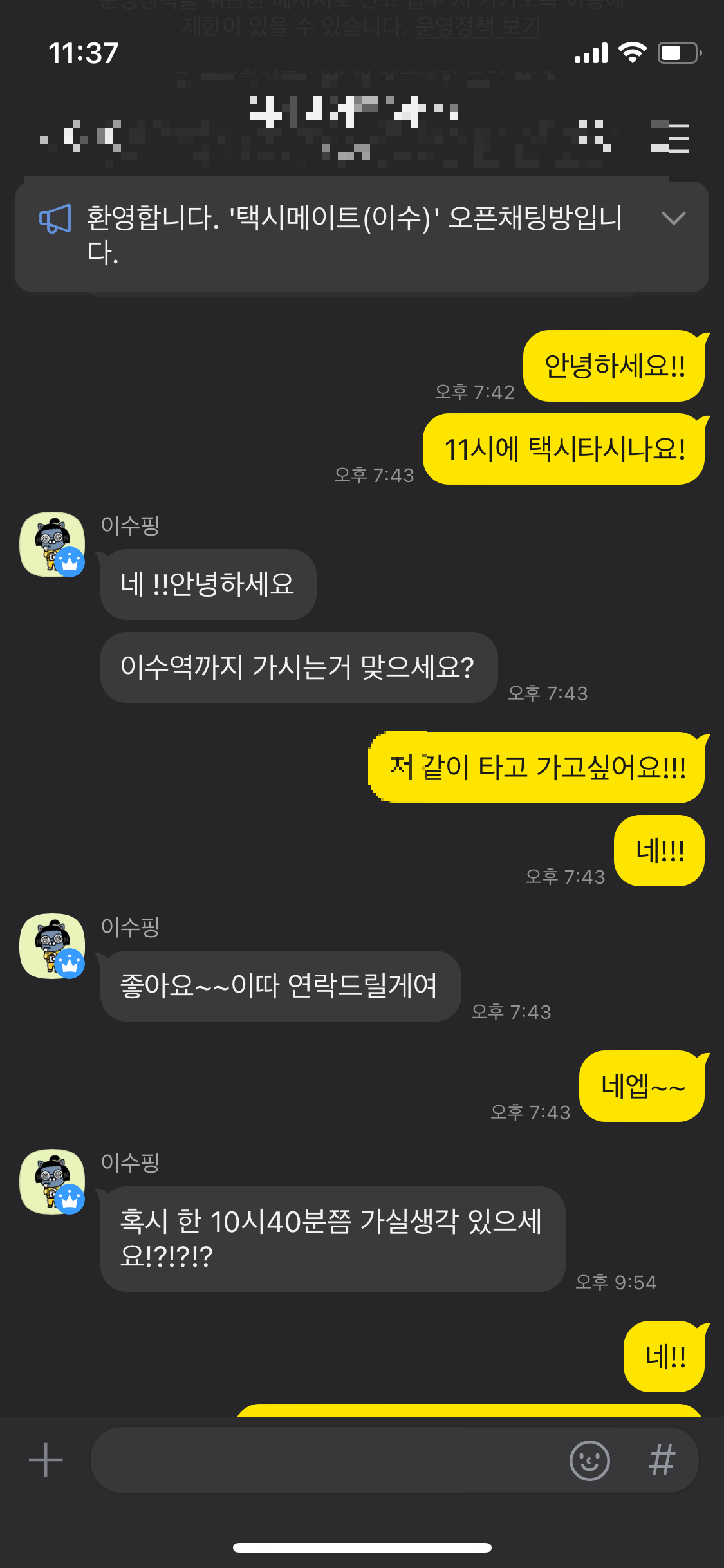 그리고 다음날.. 택시메이트를 아무리 새로고침해도 올라오는 글이 없어서 좀 속상했다