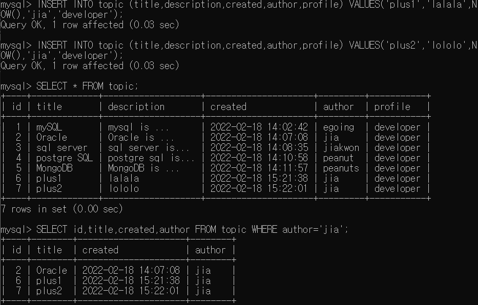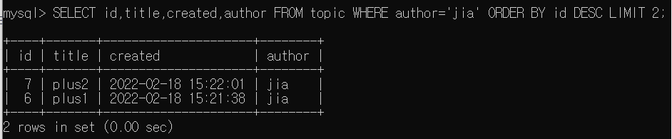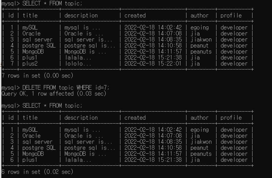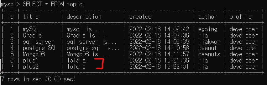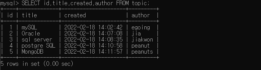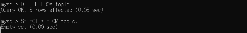 topic이라는 테이블의 모든 데이터를 보여주는 명령어이다.