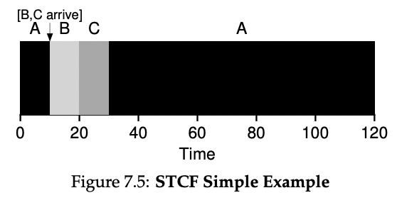 이렇게 STCF에서는 모든 job이 동시에 도착하지 않아도 반환시간이 최적이다.