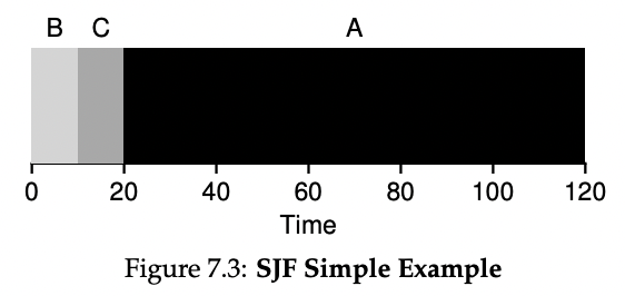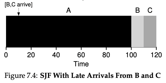 B,C가 A보다 짧은 job이기 때문에 먼저 수행하게 된다.