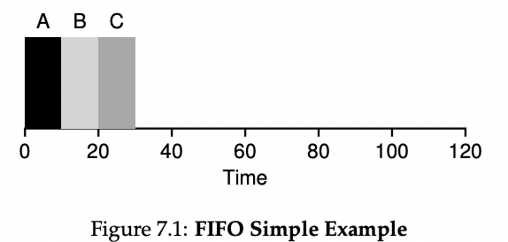 A같이 아주 큰 job이 들어왔는데 안타깝게도 이게 제일 먼저 처리된다면 b,c는 cpu를 조금밖에 안쓰는 job인데도 100이나 기다렸다가 실행된다.