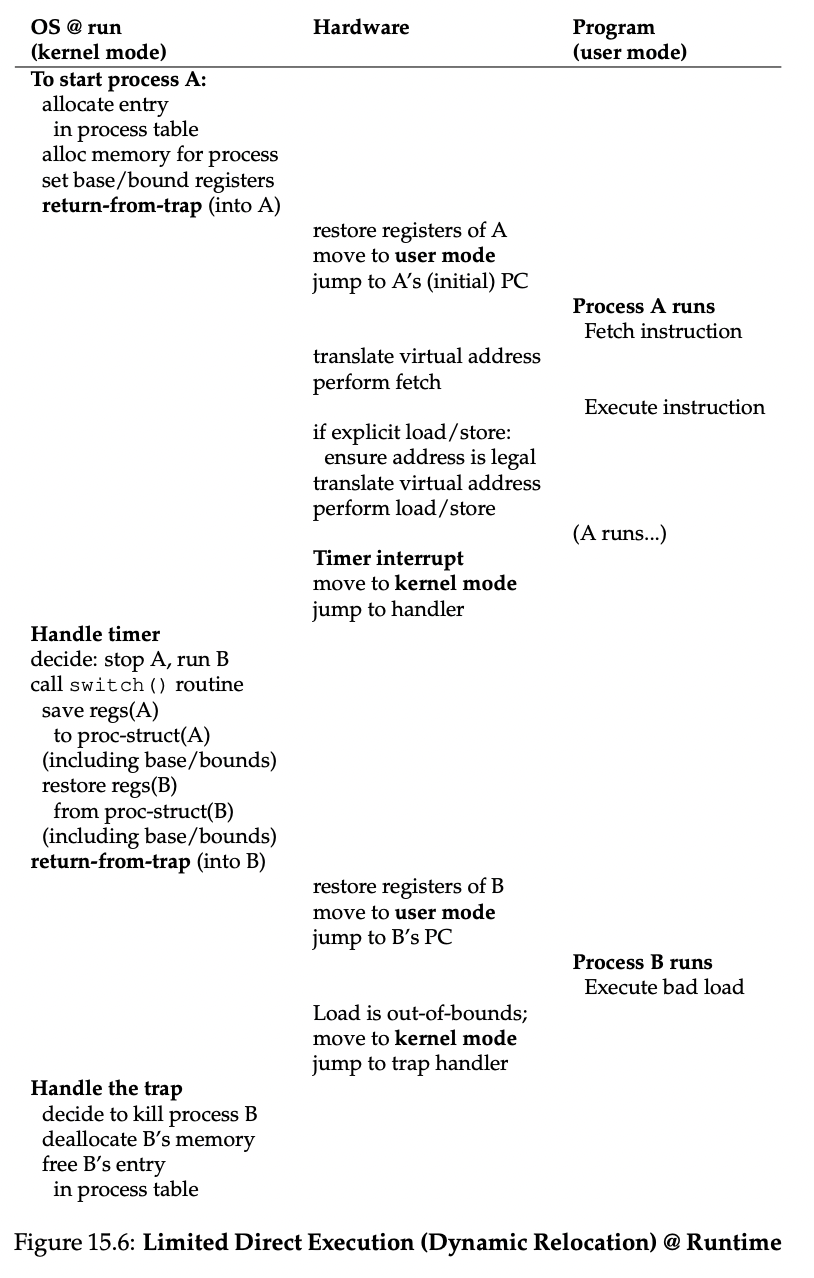 그리고 이 동적재배치(dynamic relocation)는 base and bounds라는 이름으로도 불린다.