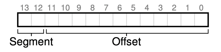 그리고 상위 2bit는 segment를 구분하는데에 사용되고(00,01,10,11), 뒤의 12bit는 각 segment의 시작부터 얼마나 떨어졌는지(offset)를 표현한다.