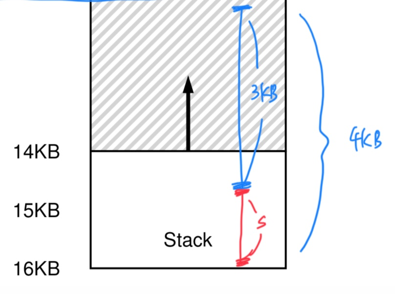 이 offset은 실질적인 stack의 시작으로부터 크기를 나타내는것이 아니라 물리적인 시작지점부터의 offset이 3k라는 뜻이다.