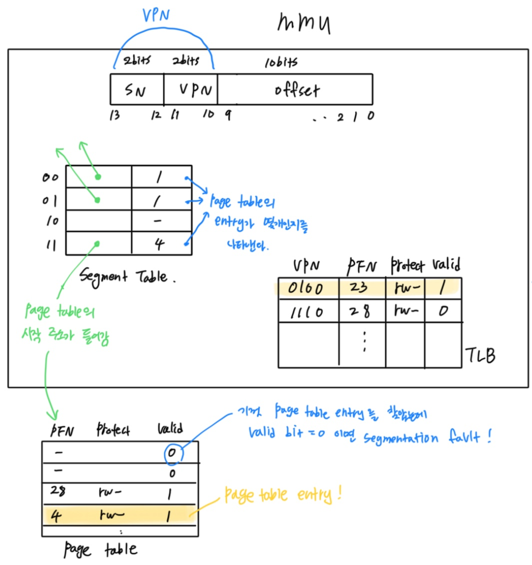 또한 segment table은 mmu안에 레지스터 형식으로 들어가 있다고 볼 수 있다.